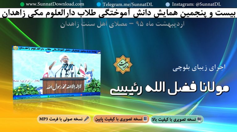 مولانا فضل الله رئیسی از نعت خوانان مشهور و محبوب بلوچستان یکی از میهمانان همایش ختم بخاری دارالعلوم زاهدان در سال 95 بود. ایشان که به لقب “بلبل بلوچستان” را از حضرت شیخ الاسلام مولانا عبدالحمید دریافت کرده بودند چندین سال بود که نعت جدیدی را اجرا نکرده بودند که امسال در چند همایش فارغ التحصیلی در بلوچستان حضور یافته و نعت های زیبایی را به زبان بلوچی اجرا نموده اند. هم اکنون فایل های تصویری و صوتی این نعت زیبارا خدمت شما ارائه میکنیم.