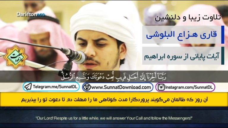 ویدیو تلاوت زیبای قاری هزاع البلوشی که آیات پایانی سوره مبارکه ابراهیم (ولاتحسبن الله غافلا عما یعمل الظالمون…) را تلاوت می کند هم اکنون از سایت سنت دانلود با زیرنویس فارسی قابل دریافت است.